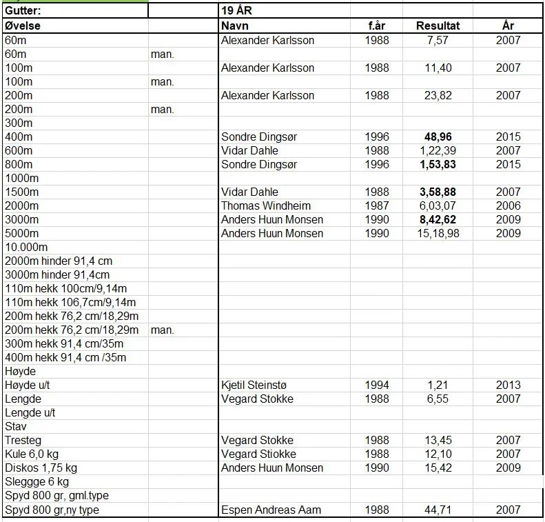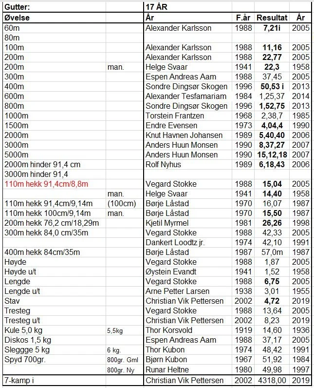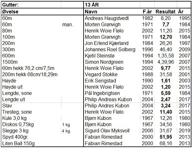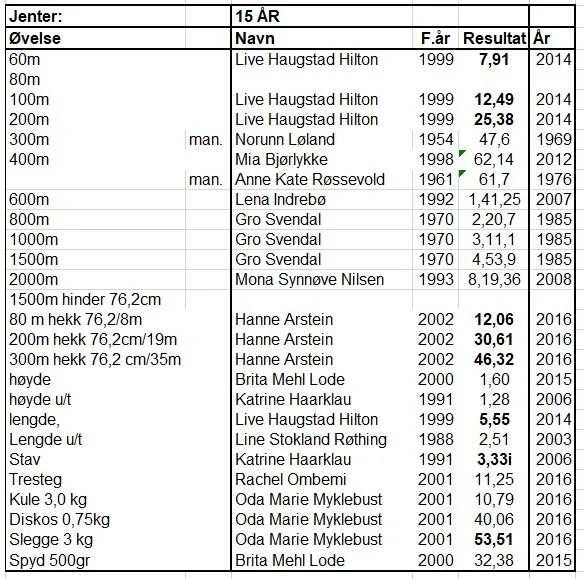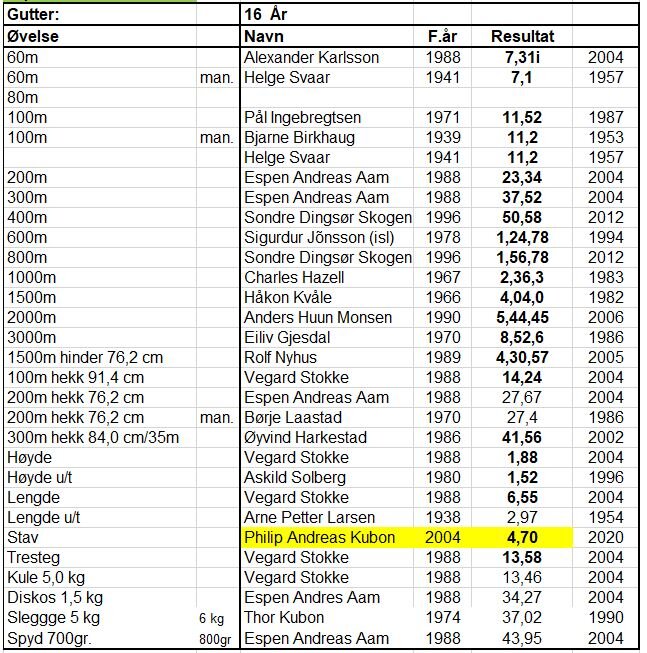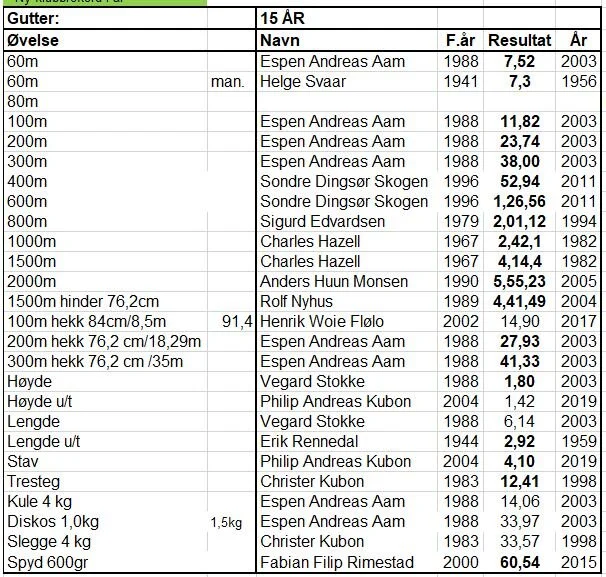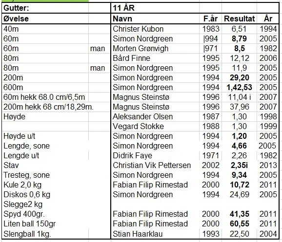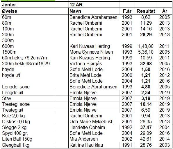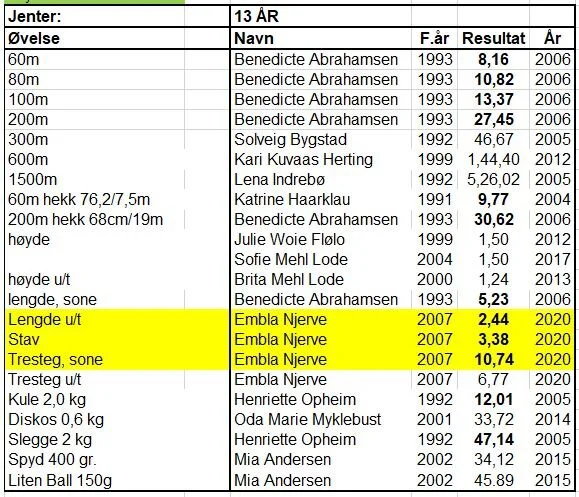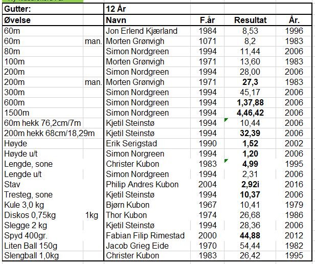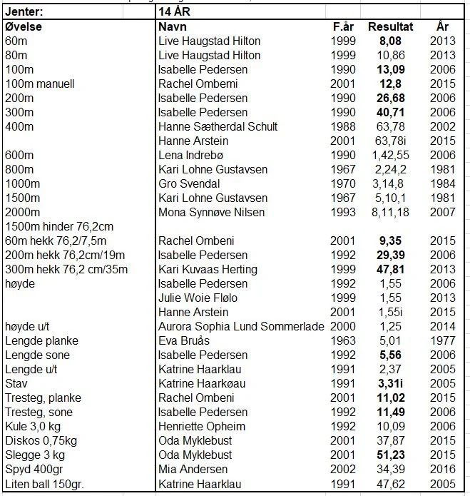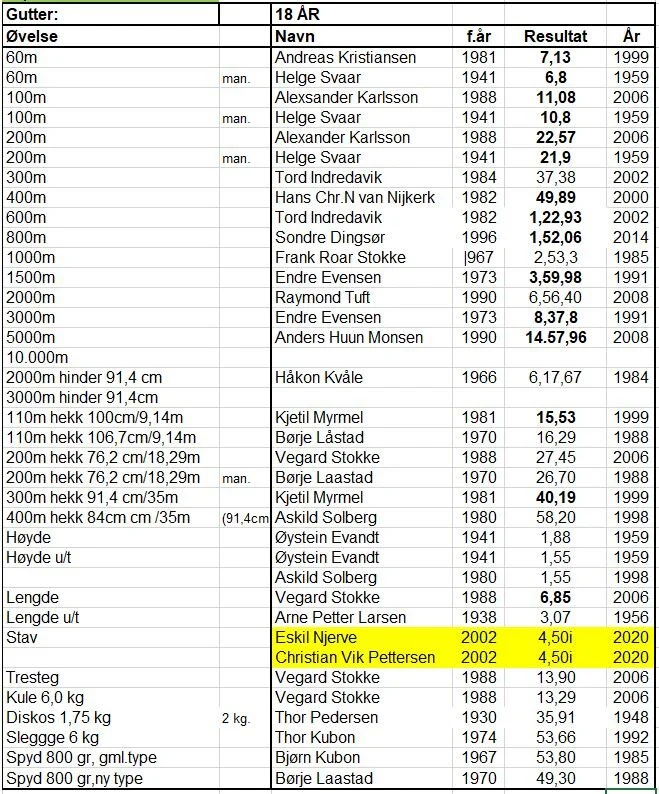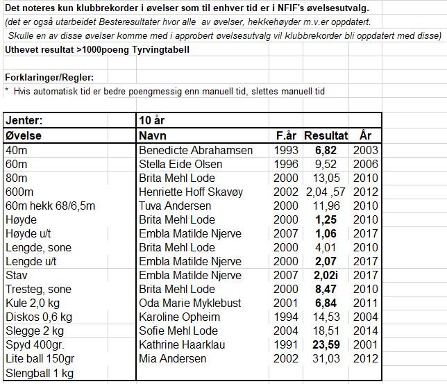 Klubbrekorder for jenter og gutter - oppdatert 31.12.2020